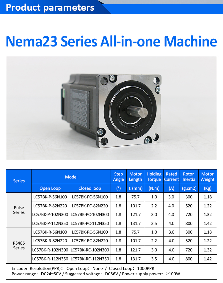 Shenzhen Xinlichuan Electric Co., Ltd. bir sırt çantası tipi NEMA23 açık döngü kapalı döngü entegre step motor üreticisi ve tedarikçisi, toptan sırt çantası tipi NEMA23 Açık Döngü/Kapalı Döngü Entegre Step Motor. Sizin için profesyonel hizmet ve daha iyi fiyat sağlayabiliriz. Sırt çantası tipi NEMA23 Açık Döngü/Kapalı Döngü Entegre Step Motor Ürünleri ile ilgileniyorsanız, lütfen bizimle iletişime geçin. Vicdan fiyatının, özel hizmetin fiyatının emin olun kalite kalitesini takip ediyoruz.