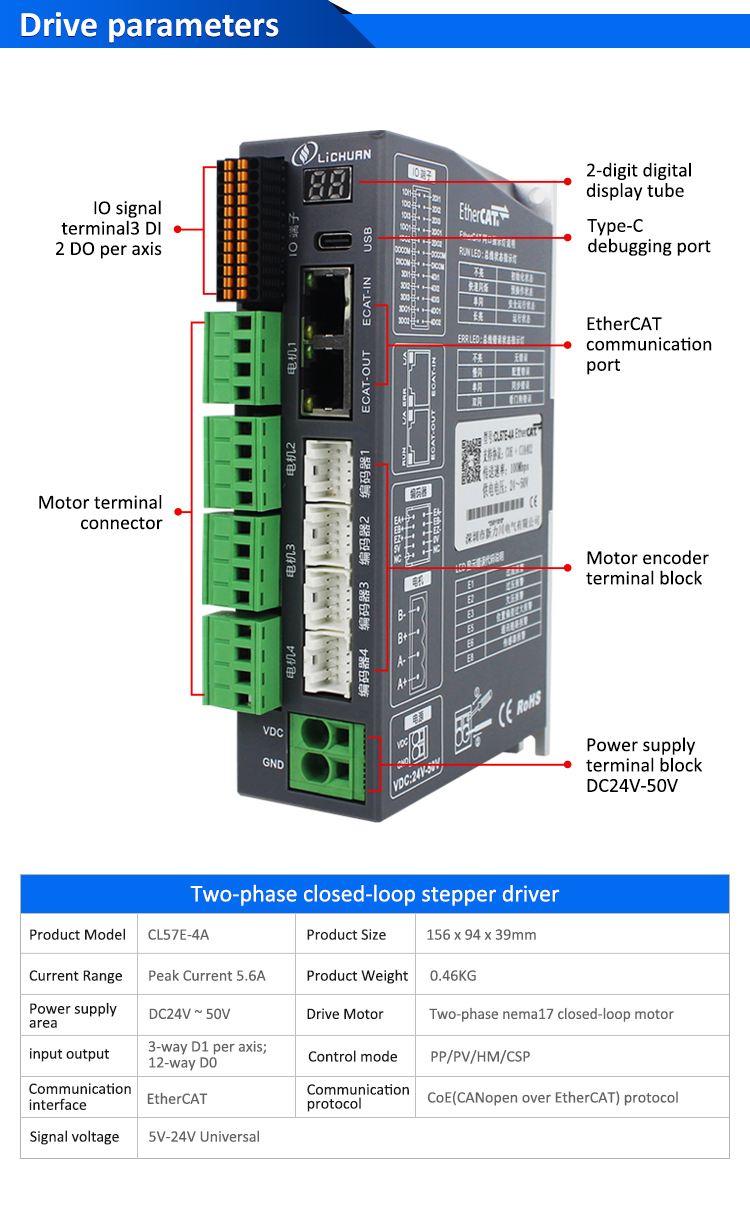 EtherCAT 2 Fazlı Nema23 4 Eksenli DC Kapalı Döngü Step Motor Sürücü Seti