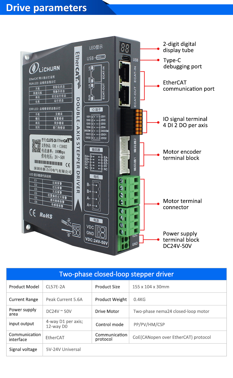 EtherCAT 2 Fazlı Nema24 4 Eksenli DC Kapalı Döngü Step Motor Sürücü SetiYeni ürünler EtherCAT 2 Fazlı Nema24 2 Eksenli DC Kapalı Döngü Step Motor Sürücü Seti, LICHUAN®'dan CE/ROHS ile Çin'de üretilmiştir. Fabrikamız Çin'deki ünlü bir EtherCAT 2 Fazlı Nema24 2 Eksenli DC Kapalı Döngü Step Motor Sürücü Seti üreticileri ve tedarikçileridir. Ürünümüz yüksek kalite/dayanıklı/kararlı çalışma ve ucuz fiyattır. Ve özelleştirilmiş hizmetler sunuyoruz.