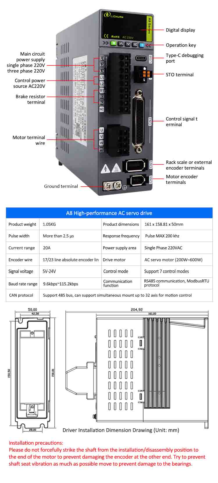 The Lichuan A8 Yüksek Doğruluklu STO ABZ AC Servo Motor Sürücüleri Kitiiçin tasarlanmıştırhassas, kararlı, güvenli hareket kontrolüküçük ve orta ölçekli endüstriyel makinelerde.